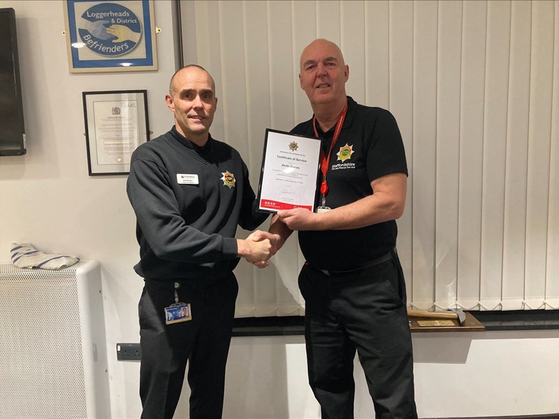 After 41 years of serving the communities of Staffordshire, Watch Manager Keith Davies has hung up his fire helmet.